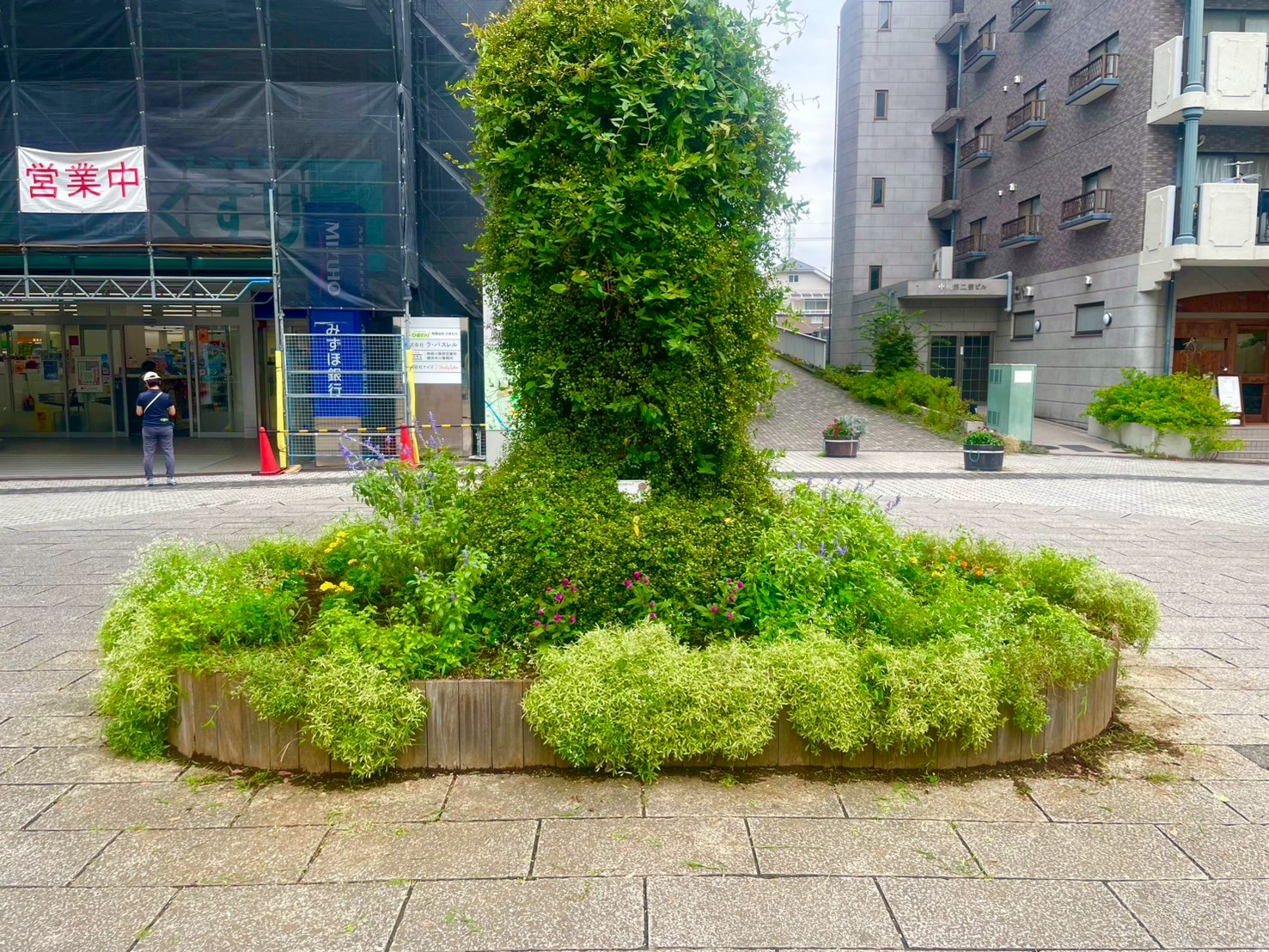 中川駅商業地区にある約60カ所の花壇やプランターは、11月中旬の定例活動で来年の春まで楽しめるお花に植え替える予定です。