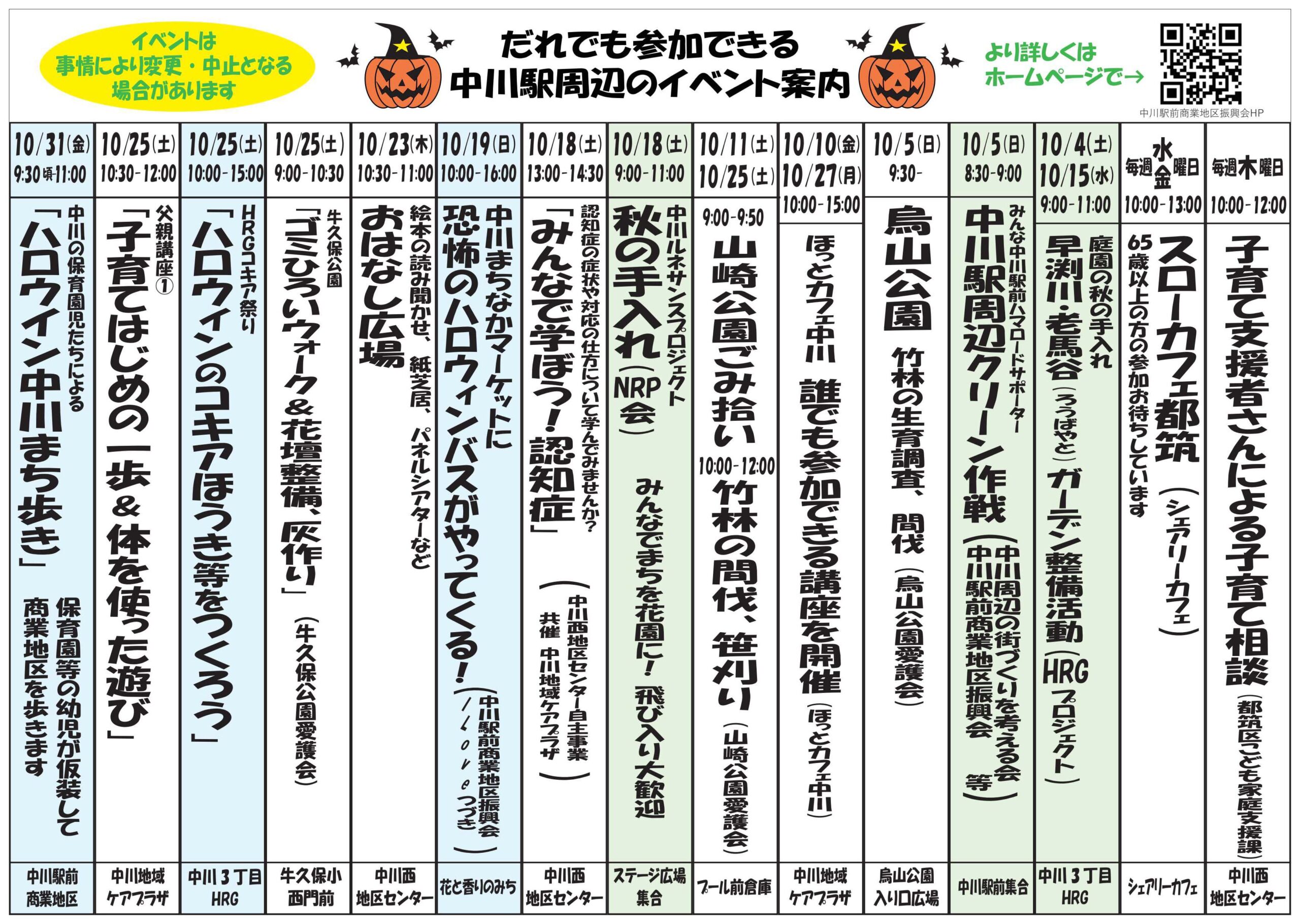 中川周辺の10月イベントスケジュール ぐるっと緑道 2025.10.01 10月に行われる中川周辺の様々な団体によるイベント、活動スケジュールをお届けします。少し涼しくなり、楽しい秋のイベントとボランティア活動がたくさん予定されています。やっと来た秋を楽しみましょう。