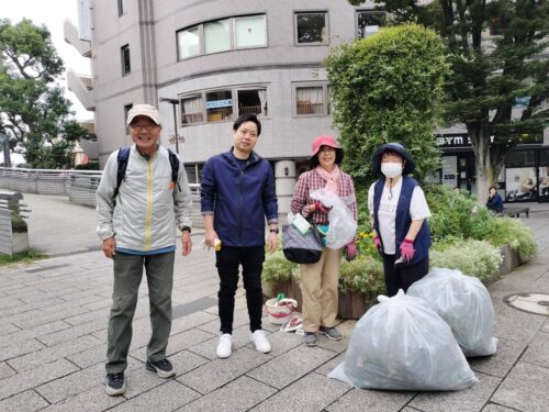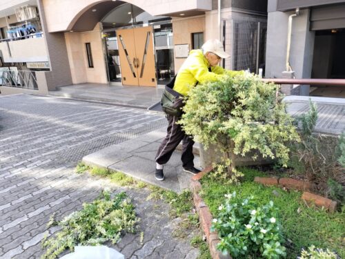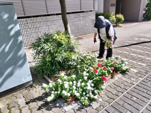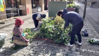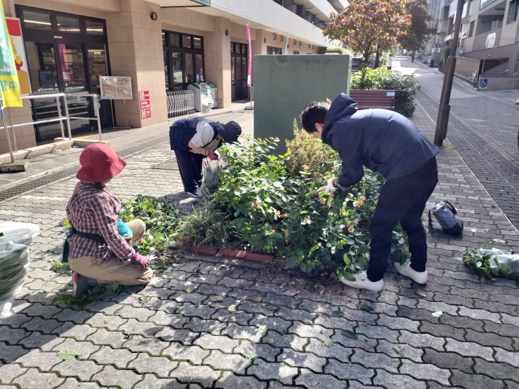 植替え前にも花、植木の剪定、草取りが行われています。10月18日の定例活動には、初めて「アプリ薬局」の斉藤さんが参加して下さいました。「お客様からNRPの活動を教えてもらい参加しました。これからも地域をきれいにする為に参加したい」とおっしゃっていました。