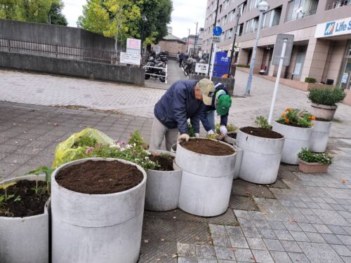 中川ルネッサンスプロジェクト会(NRP会)は11月11日(火)、14日(金)、15日(土)と16日(日)に中川駅前商業地区花壇の植替えを行いました。