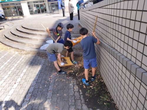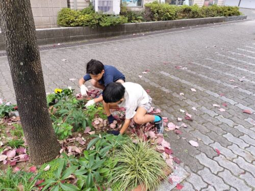 また、ステージ広場の落ち葉集めをしました。