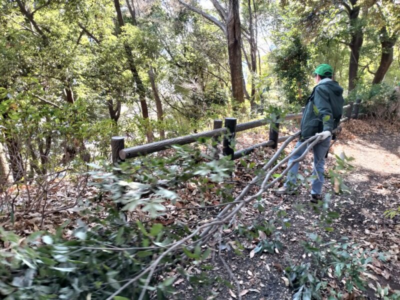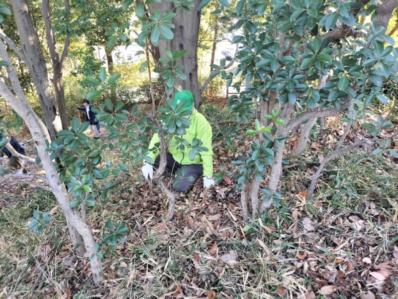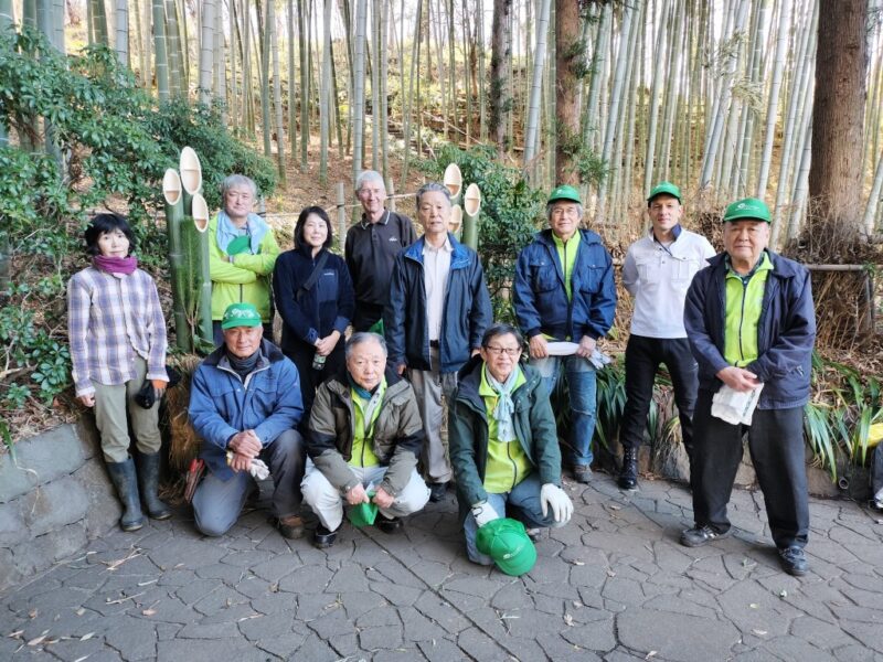 ぐるっと緑道烏山公園愛護会の整備活動が1月4日(日)9時半~12時行われました。14名のメンバーが雑木林の間伐とアズマザサの刈取りを行い、里山がスッキリ、綺麗になりました。作業終了後は、木々の間から青空の中に富士山が見える烏山の頂上で、新年会を行い交流を深めました。