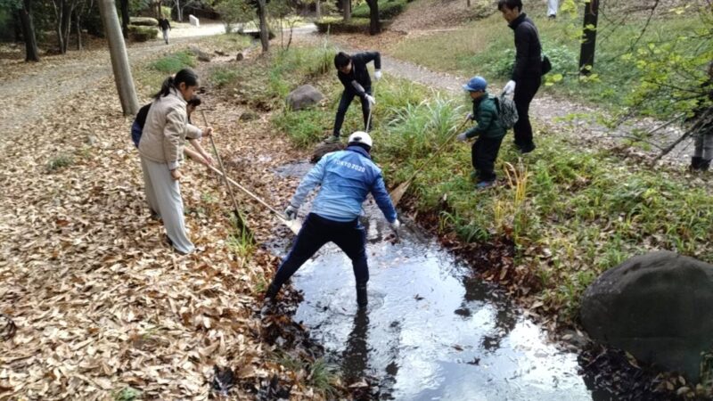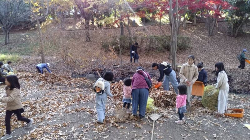 今回のクリーン作戦は遊びだったかな!?ということです。子どもから大人まで、みんなで熊手を使ってせせらぎの落ち葉をさらったり、トングで小枝を拾ったり、落ち葉拾いをしたり、ゴミ袋を担いで運んだりしました。アンケートからは「たのしかった」、「清掃自体もだけど、みんなでやるとおもしろい」、「またやりたい」という意見ばかりでした。今回も遊びあり、学びありのクリーン作戦となりました。当たり前ですが、1人1人の力が集まると、大きな力になりますね。